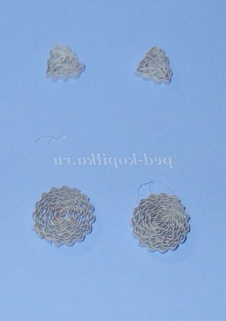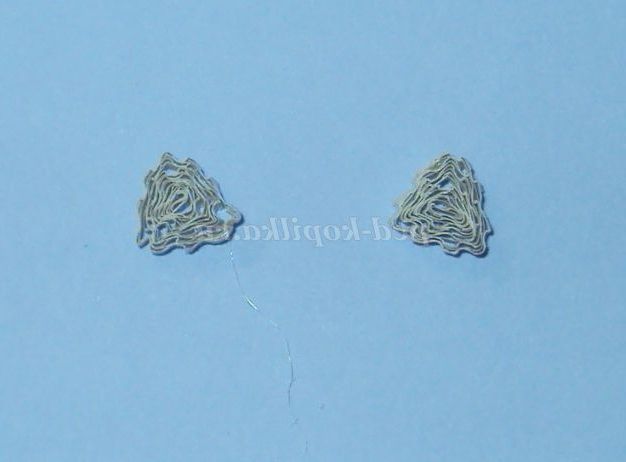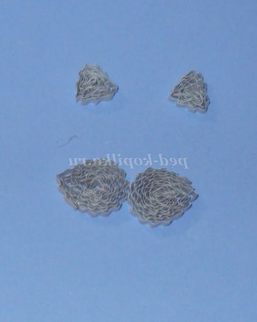 Одну смужку ділимо навпіл. З половинки скручуємо диск - борідку для мордочки. Залишилася половинку розрізаємо ще раз навпіл і скручуємо ще два «пальчика».