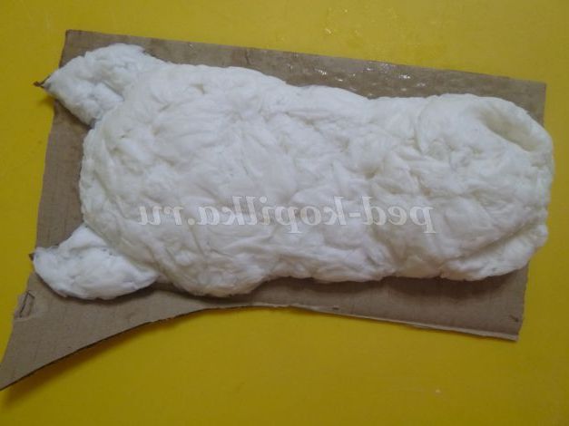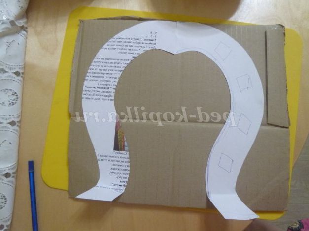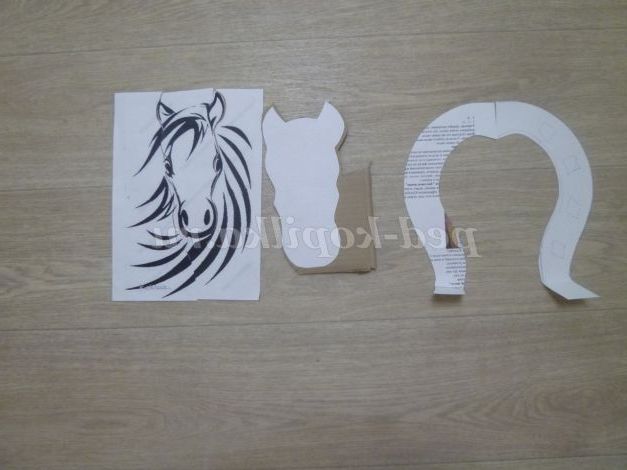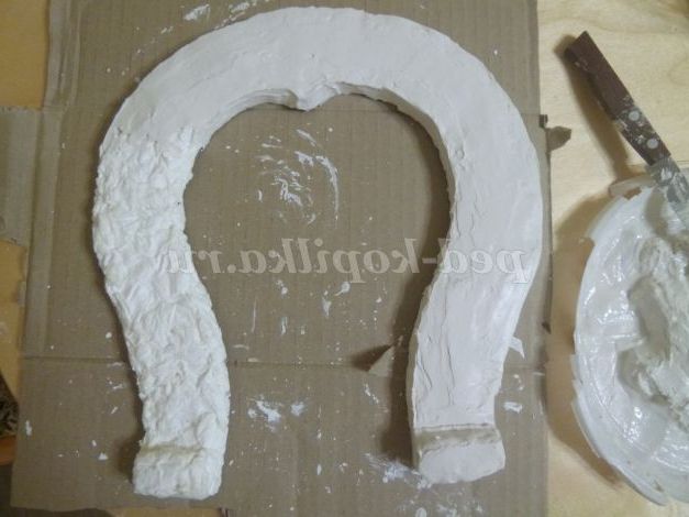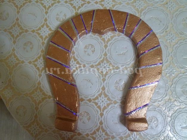 На зворотному боці в деяких місцях приклеїти шматочки, наприклад, пінопласту, щоб голова коня була выпуклей підкови.