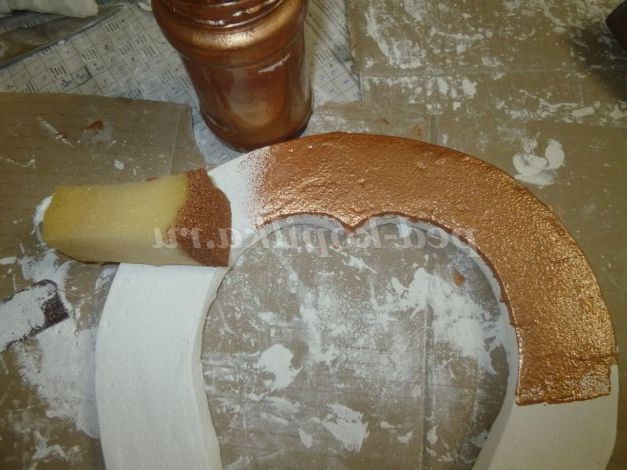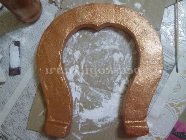Потім підкову фарбуємо тим же методом бронзовою фарбою.