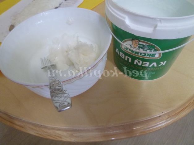 Додати клей ПВА, добре розмішати все. Суміш повинна вийти густий.