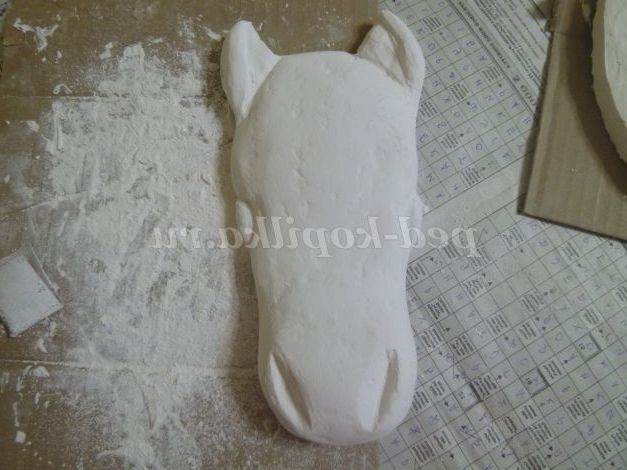 Шпаклівкою покриваємо голову коня, намагаючись формувати частини мордочки.