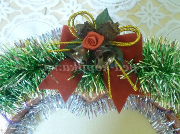 13.Новогодние прикраси: дощик, мішура, бантик з дзвіночками.