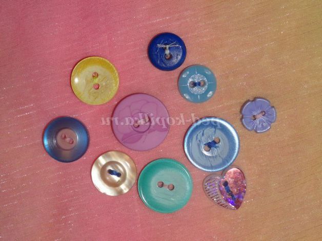 На термо-клей приклеюємо гудзики на пластик. Краще заздалегідь позначити на пластику олівцем передбачуваний коло