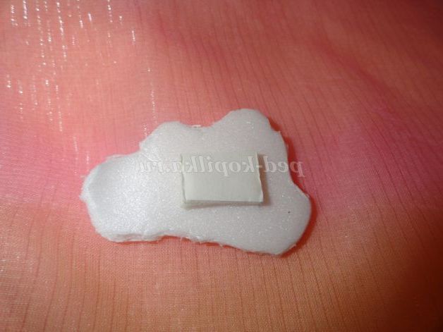 Відрізаємо квадратик від двостороннього скотча і приклеюємо його до хмаринці