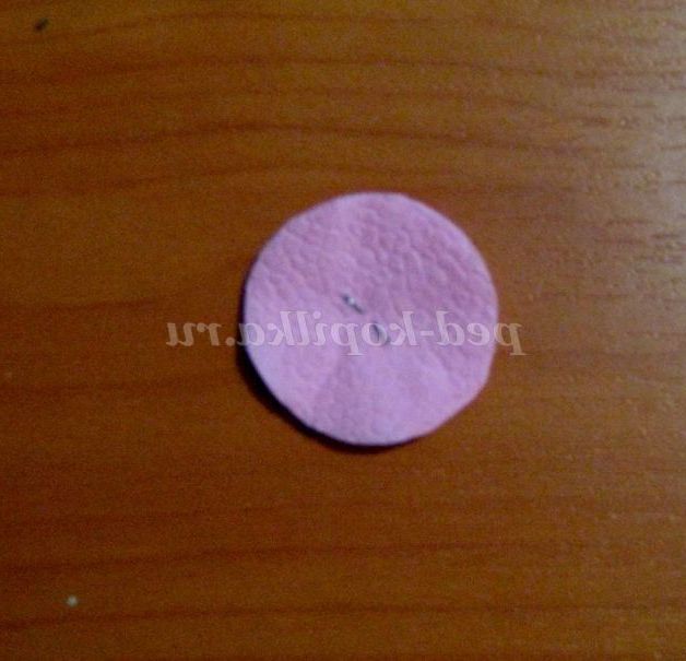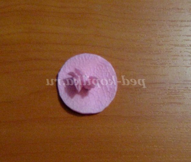 10. З квадрата вирізаємо коло. І починаємо збирати догори всі шари серветки, кожен з отдельности.Салфетки приминаем пальцями, щоб вони тримали форму.