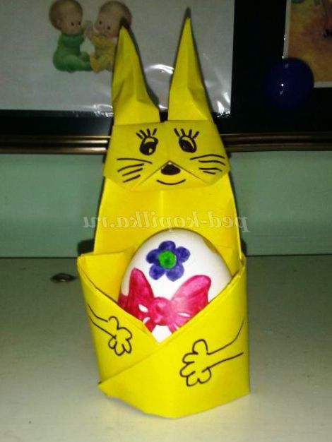 Люди Західної Європи і Північної Америки не представляють Великдень без казкового зайця або кролика. Зайчик з паперу ховає яйце у своїх лапках.