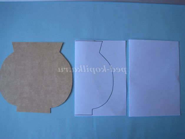 Беремо аркуш кольорового паперу за своїм бажанням, складаємо його навпіл, малюємо половинку форми вази і вирізаємо.