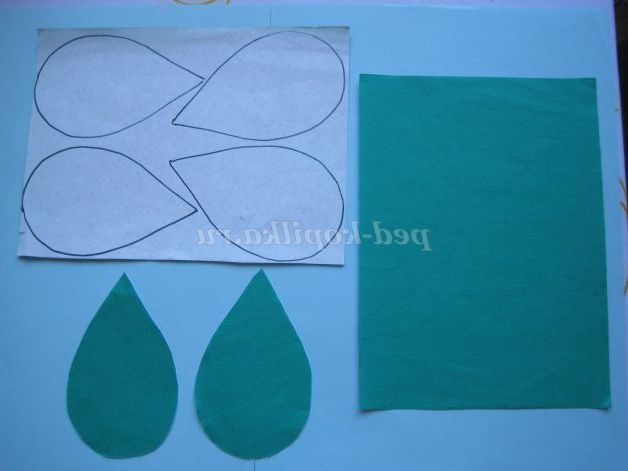 Беремо папір зеленого кольору, обводимо шаблон і вирізаємо листя.