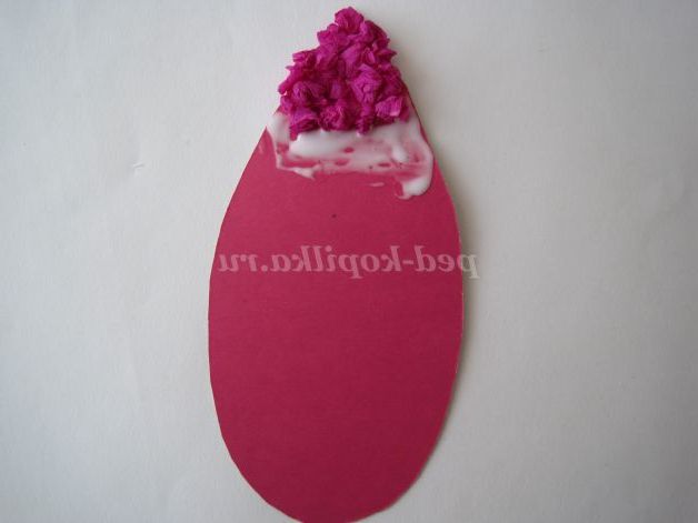 На клей накладаємо кульки (грудочки) і злегка притискаємо.