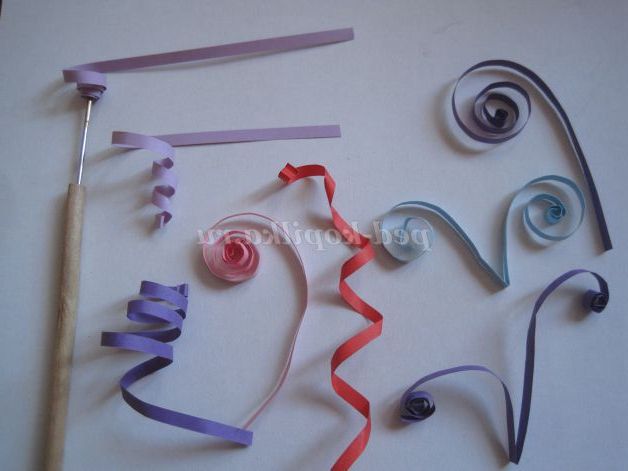 Беремо смужки для квілінгу, з допомогою інструменту для квілінгу скручуємо роли, кладемо їх на стіл, щоб вони трохи розкрутилися, вийшли деталі - спіральки, краю, одержані спіральок, підклеюємо.