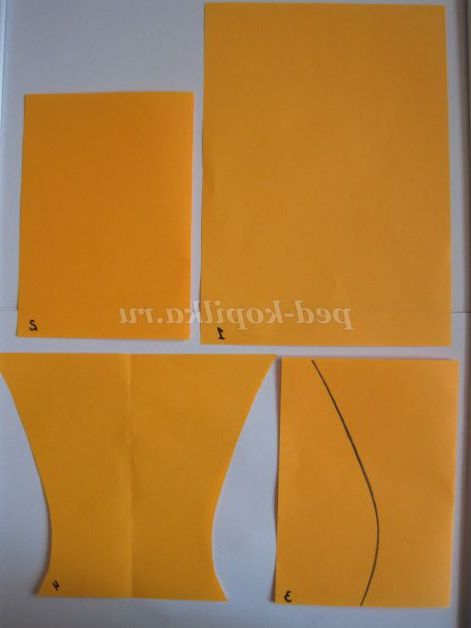 Беремо аркуш кольорового паперу, складаємо його навпіл, малюємо половинку вази і вирізаємо. Це основа вази.