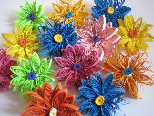 Зі смужок для квілінгу інших кольорів виготовляємо ще квіти.