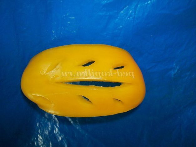 Від неї прорізати прожилки. Симетрично з двох сторін на відстані від прорізи вирізати овальні отвори.