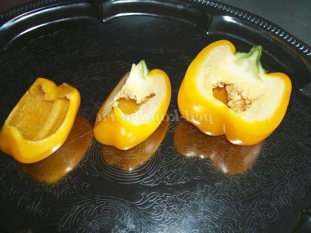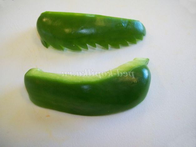 По краях заготовки з перцю вирізати маленькі трикутники.
