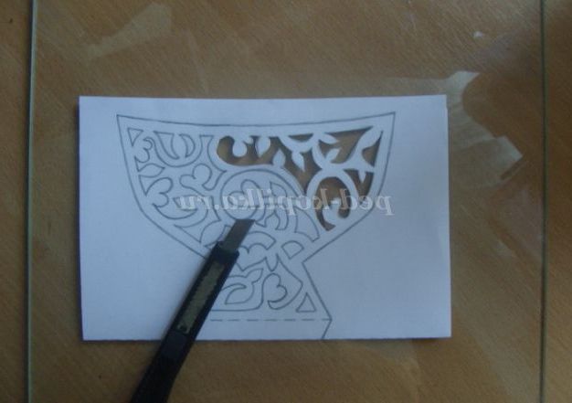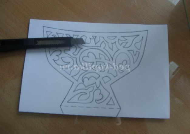 Коли вся ваза вирізана, згинаємо по штрихам, визначаємо дно вази для стійкості.