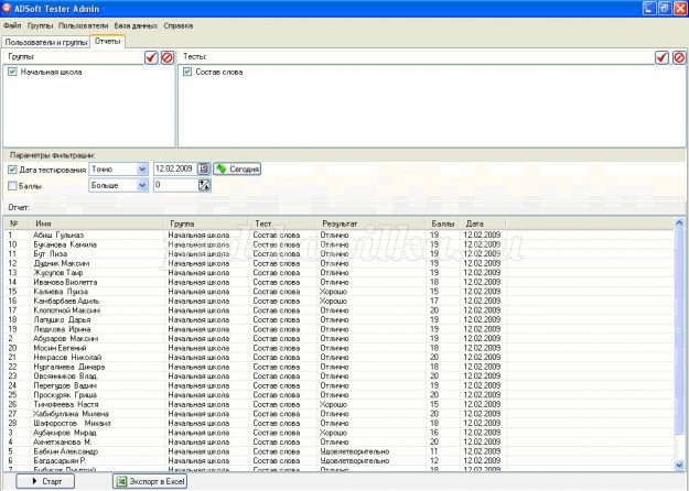 4. Ведеться облік роботи кожного учня з тестом: враховується номер спроби тестування (повторна спроба пройти тестування блокується), дата, час, пройдений тест повністю (і скільки правильних відповідей). Подібна статистика дозволяє уникнути конфліктних ситуацій з учнями.