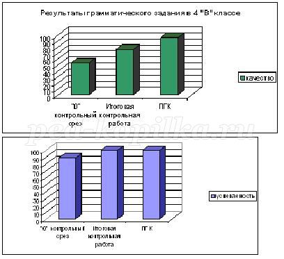 На основі аналізу граматичного завдання по російській мові і результатів ПВК 4 «В» класі ЗОШ№10 Г.Экибастуза можна побачити, як вплинула автоматизована система на успішність учнів даного класу.