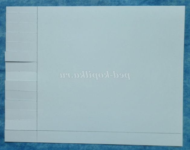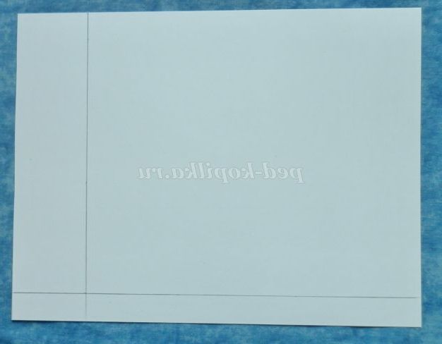 1. Із білого картону виріжте прямокутник зі сторонами 27см. і 21см. На звороті накреслити прямокутник зі сторонами 22 див. і 19 див. На малюнку вийде 4 прямокутника.