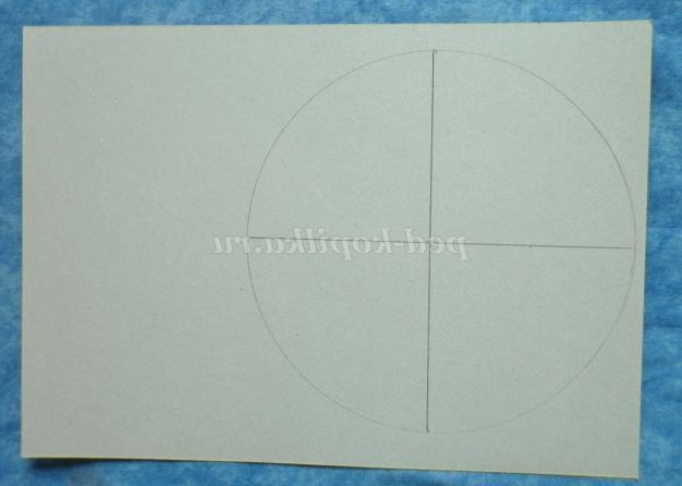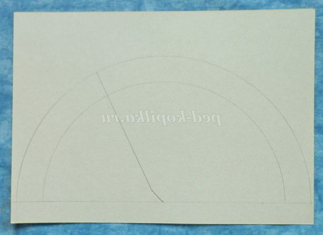 6. Приступимо до виготовлення носовій частині. На звороті жовтого картону накреслити 2 півкола, діаметром 12 см і 14,5 див. Розділити напівкола на більшу і меншу частину, як показано на рисунку.