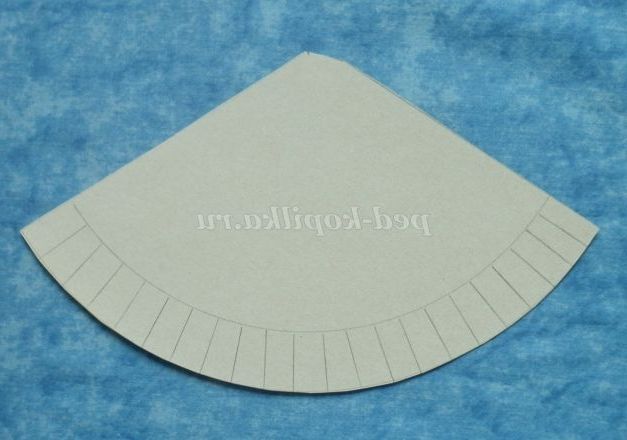 7. Вирізати велику частину заготовки (майбутній конус), вузький півколо розкреслити на рівні смужки.
