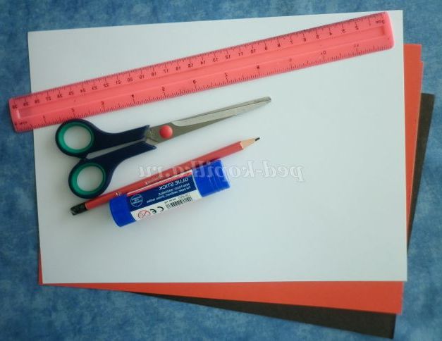 кольоровий папір червоного, білого та чорного кольору;