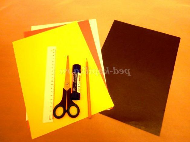 кольоровий папір червоного, жовтого і білого кольору;