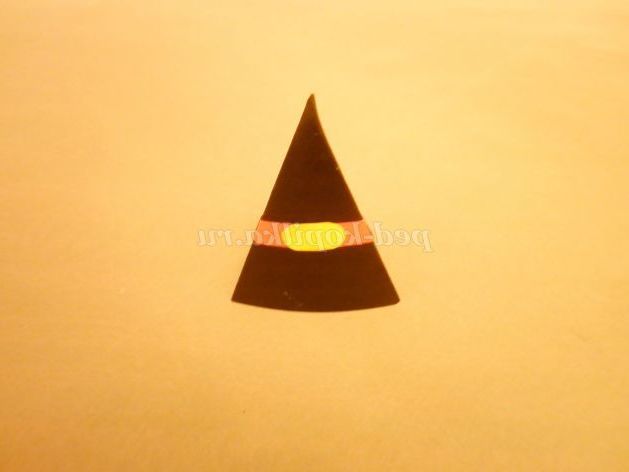 7. На картон чорного кольору докласти шаблон тулуба і вирізати. Із зворотного боку заготовки прокреслити кінчиками ножиць по лініях згину (так легше буде скласти) і склеїти піраміду.