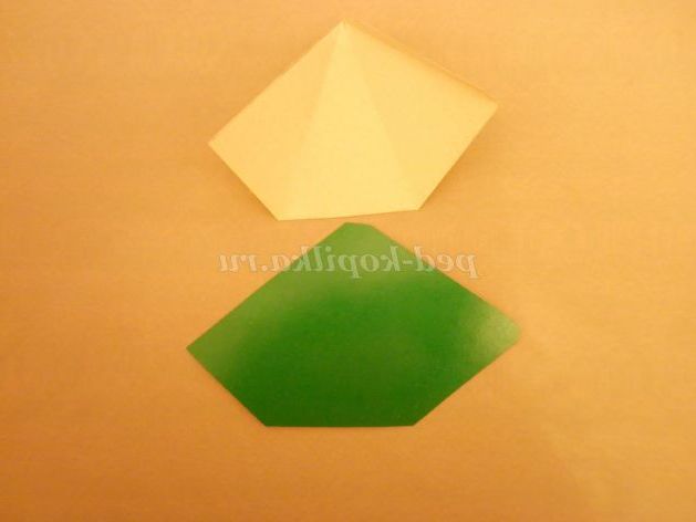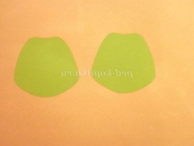 3. З паперу зеленого кольору, так само за допомогою шаблону, вирізати 2 деталі пілотки.