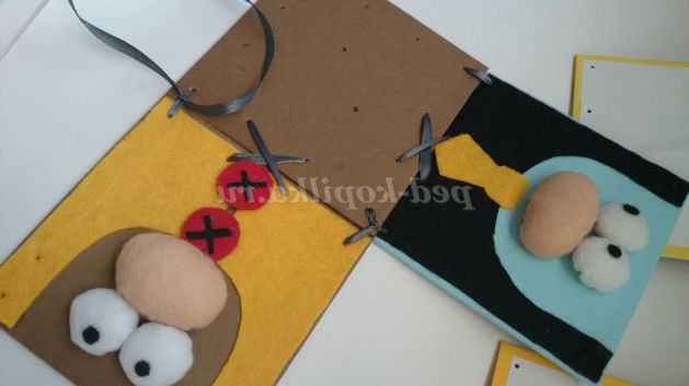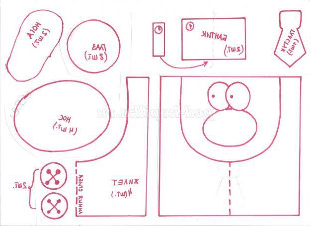 3) Розкладаємо вирізані шаблони на фетр. Намагайтеся підбирати кольори по природніше. Наприклад: очі-білого кольору, ніс - тілесного або червоного кольору...