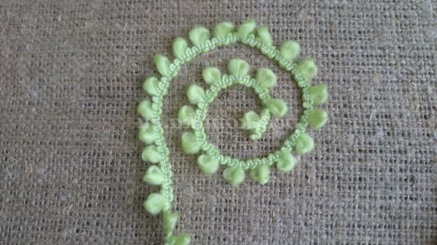 7) Потім пришиваємо готові травинки великими стібками по середині. Колір ниток може відрізнятися.