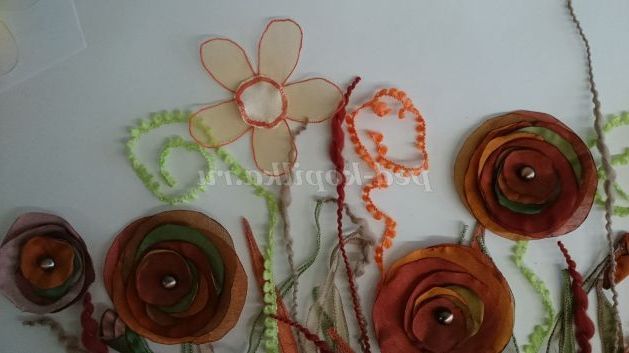 Панно з тканини і пряжі «Квітуча галявина». Майстер-клас з покроковим фото