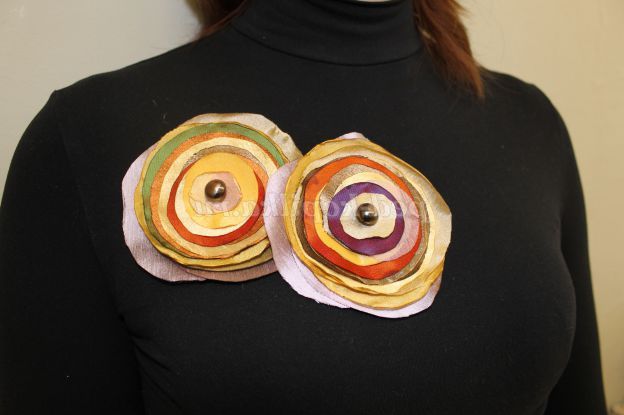 У такій техніці можна робити брошки на одяг у вигляді квітів.