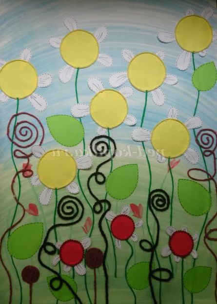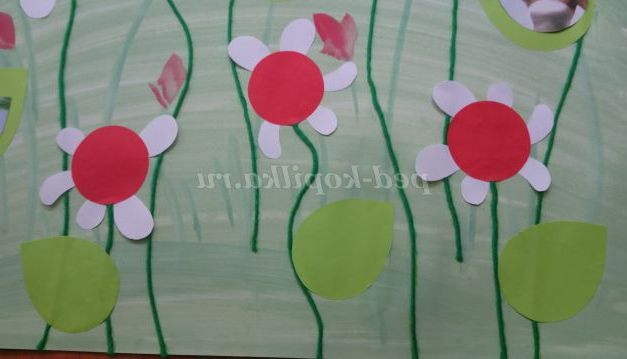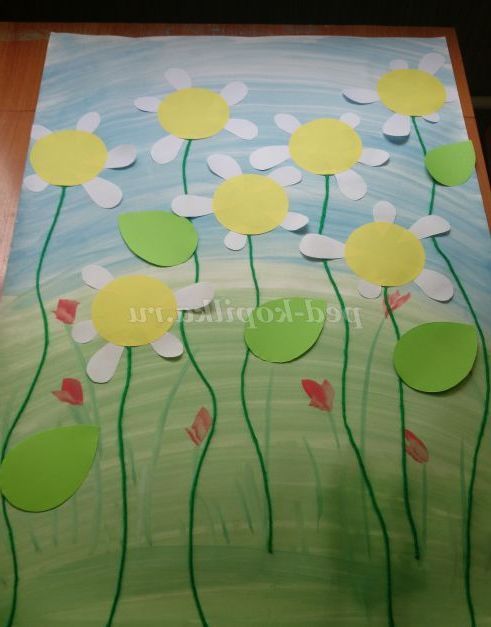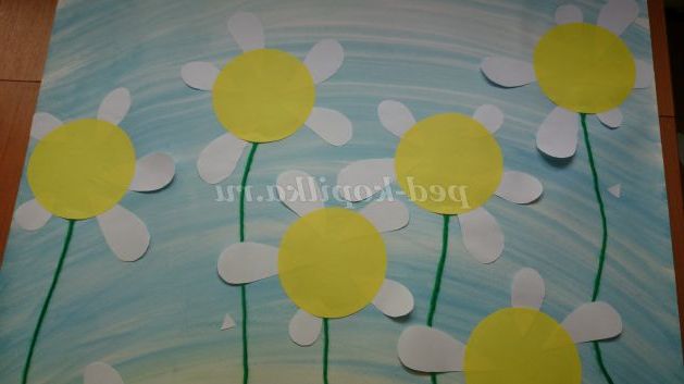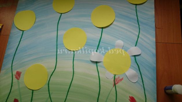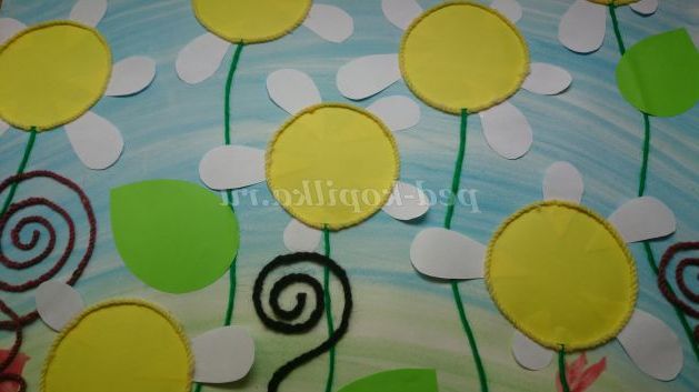 8) У нижній частині плаката, де є порожні місця, можна приклеїти три квіточки за тією ж технологією, що описано вище.