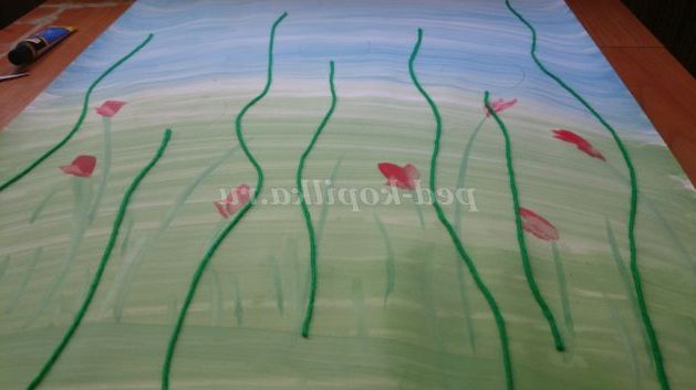 2) На нижній частині ватману можна намалювати травичку і квіточки.