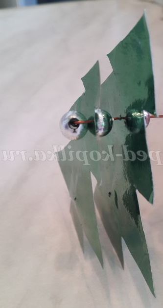 велику ялинку - бусинку - маленьку ялинку - бусинку і загинаємо кінчик дроту.