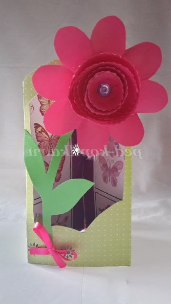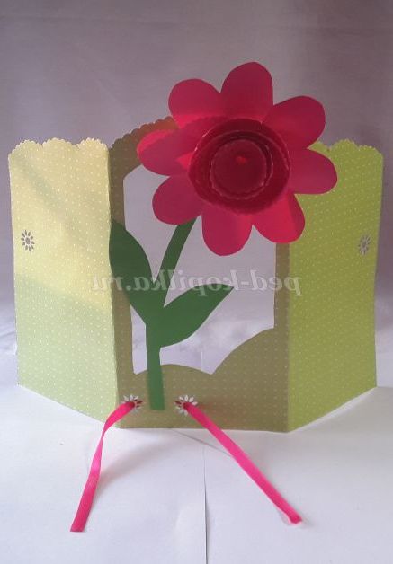 Об'ємне конструювання з паперу листівки на 8 березня «Аленький цветочек». Майстер-клас з покроковими фото