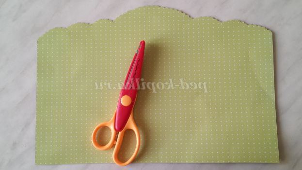 - Обведіть за шаблоном на звороті основу листівки і виріжте, використовуючи ножиці з хвилястими краями.