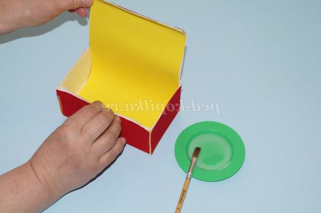 Точно так само обклеюємо зсередини коробочку жовтої оксамитової папером