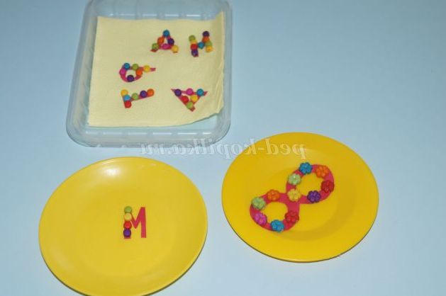 Далі вирізаємо літери «М», «А», «Р», «Т», «А» і так само прикрашаємо намистинками за допомогою клею