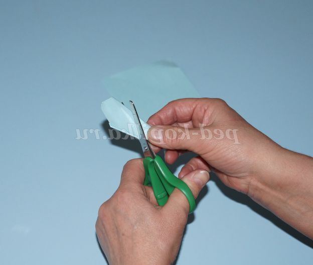 Вирізаємо сніжинки з блакитного паперу для щічок сніговика.