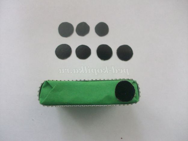Приклеюємо люк на наш танк(я взяла іграшкові колеса чорного кольору), ви можете щось інше.