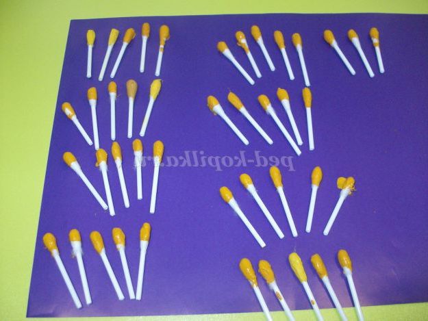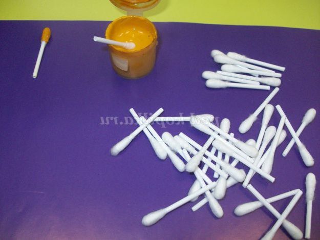 Ватні палички -18 штук, ріжемо ножицями: 6 паличок - навпіл, вийшло 12.