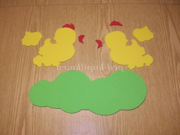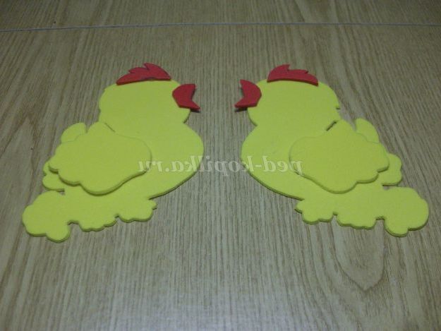 З декоративною пінки за шаблоном вирізаємо півника і курочку.
