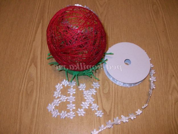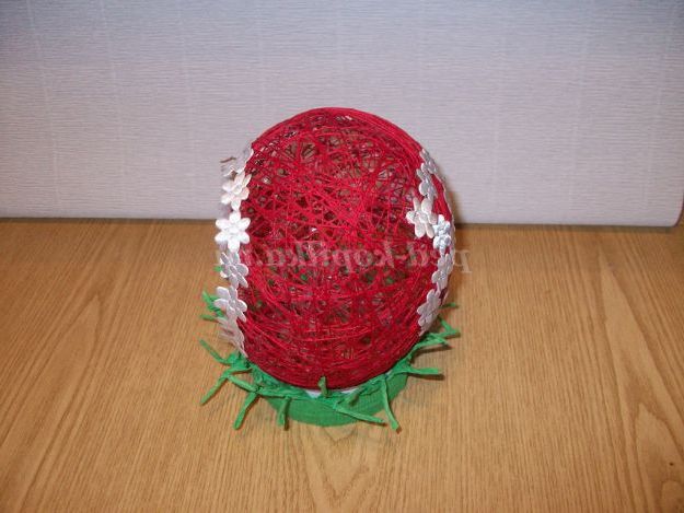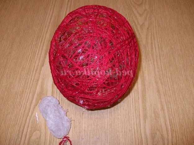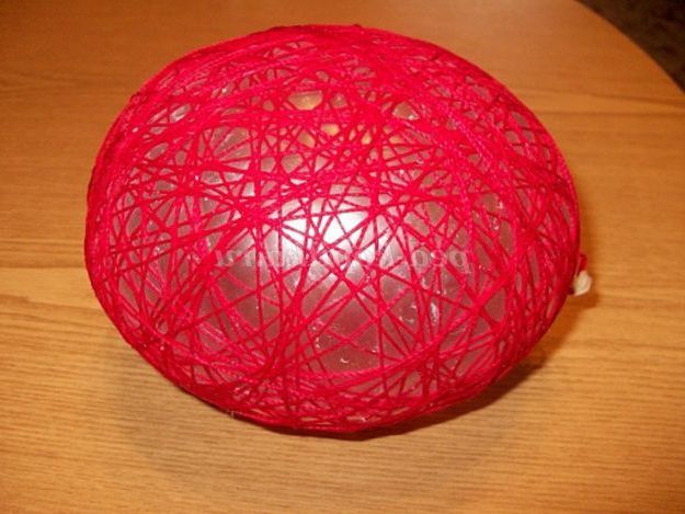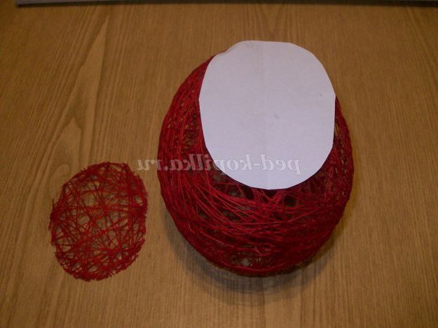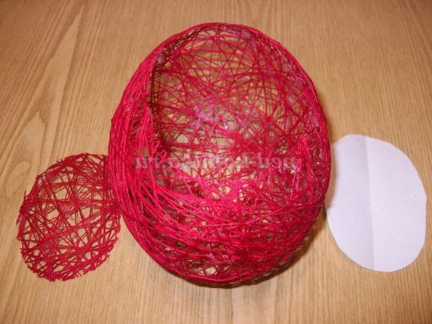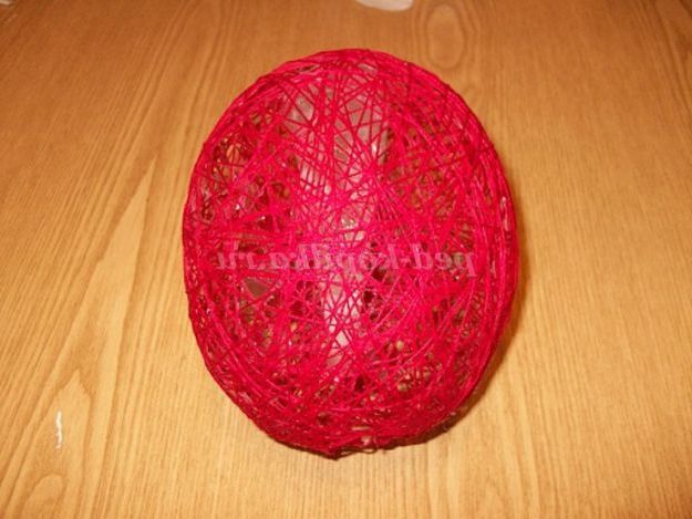 Прибираємо голку. Далі намотуємо нитку, просочений клеєм, досить щільно. Щоб яйце вийшла овальної форми, акцент робимо на бічні сторони.
