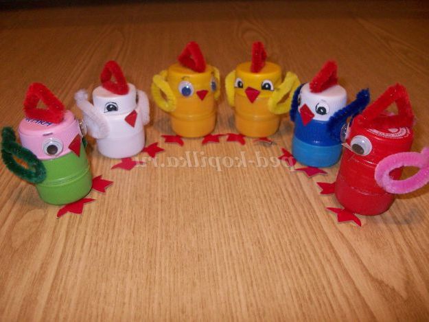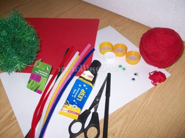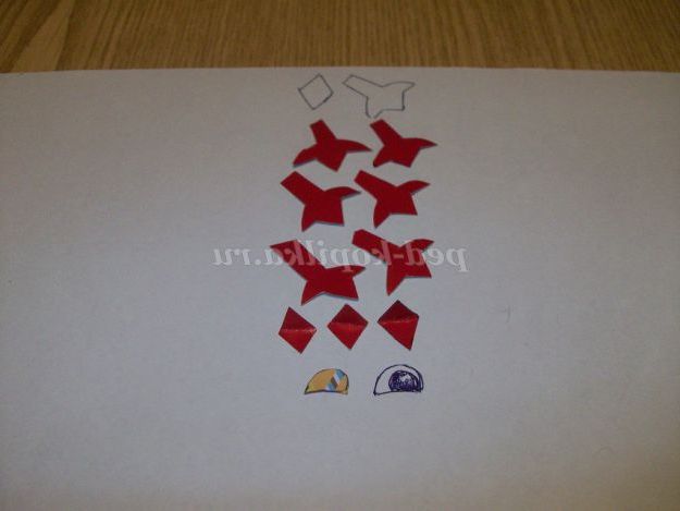 З паперу червоного кольору вирізаємо лапки,клювики.Глазки можна намалювати, можна готові, придбані в магазині, приклеїти. Вибір за вами.