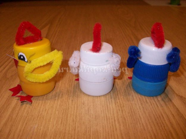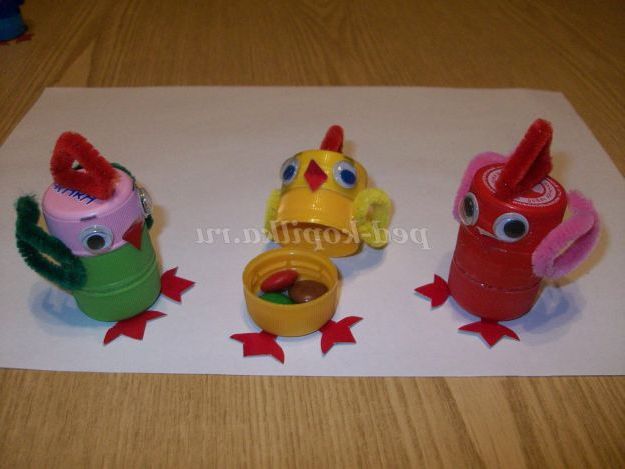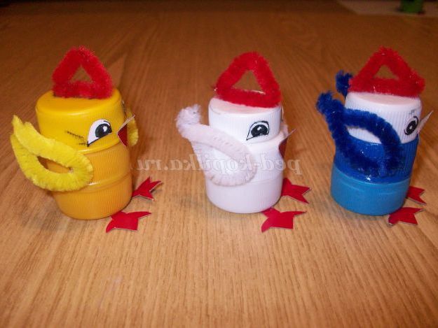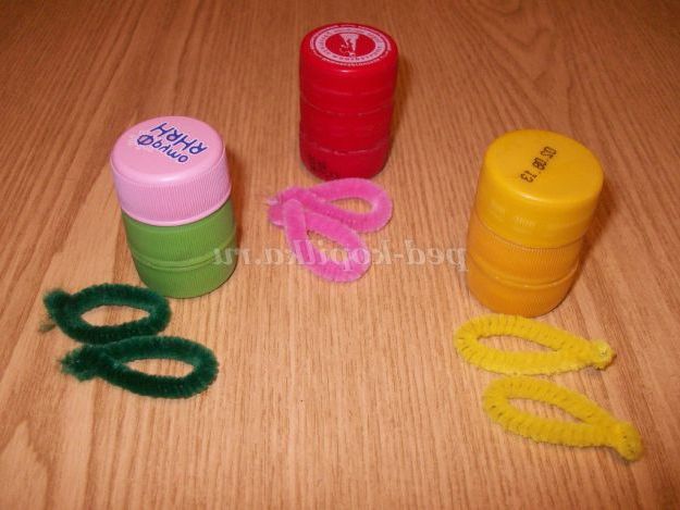 Їх ми робимо з пробок. Склеюємо по 3 штуки.В нижню частину можна покласти цукерки - сюрприз.