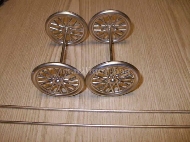 Беремо колеса від дитячої коляски, шпажки і покриваємо золотою фарбою.