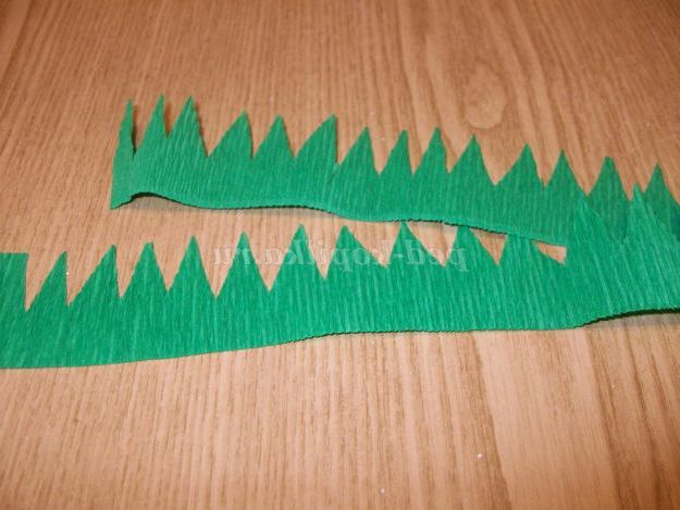 З гофрованого паперу зеленого кольору вирізаємо парканчик, для майбутніх чашолистків. Обклеюємо бутон квітки.