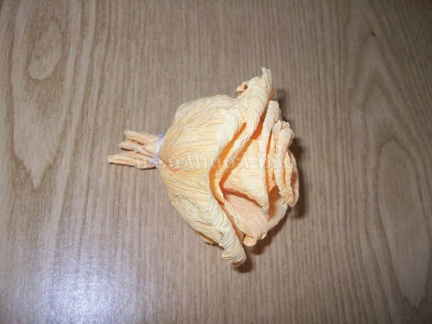 Всі обрізки використовуємо для серцевини квітки. Потім скручуємо пелюстки туго за допомогою ниток, щоб квітка не зруйнувався.