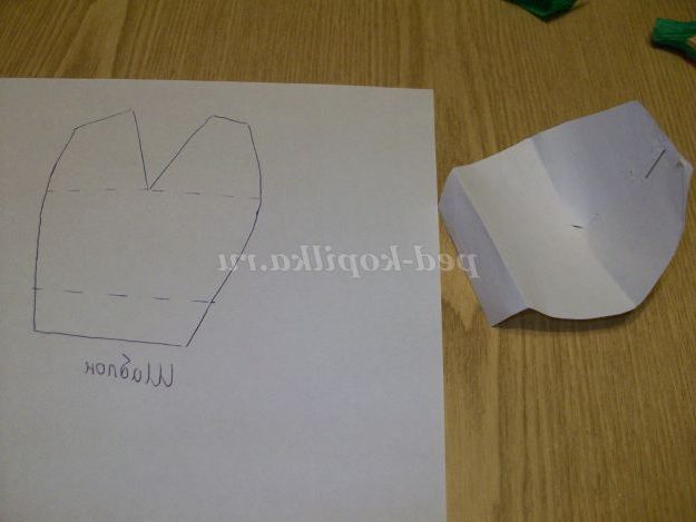 Вийшов прямокутник. Відрізаємо кути, причому уважно стежимо за тим, щоб в тих місцях, де вказано стрілками, краю залишалися сполучені.